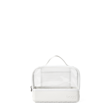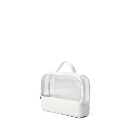 Compatible with all three Bogg Bag sizes, it features our signature tread base for tip-proof stability on vanities, counters, and shelves. A transparent topper, interior slip pocket, and wide U-shaped zipper make it easy to see and grab what you need. Finished with a sturdy top handle for grab-and-go convenience.